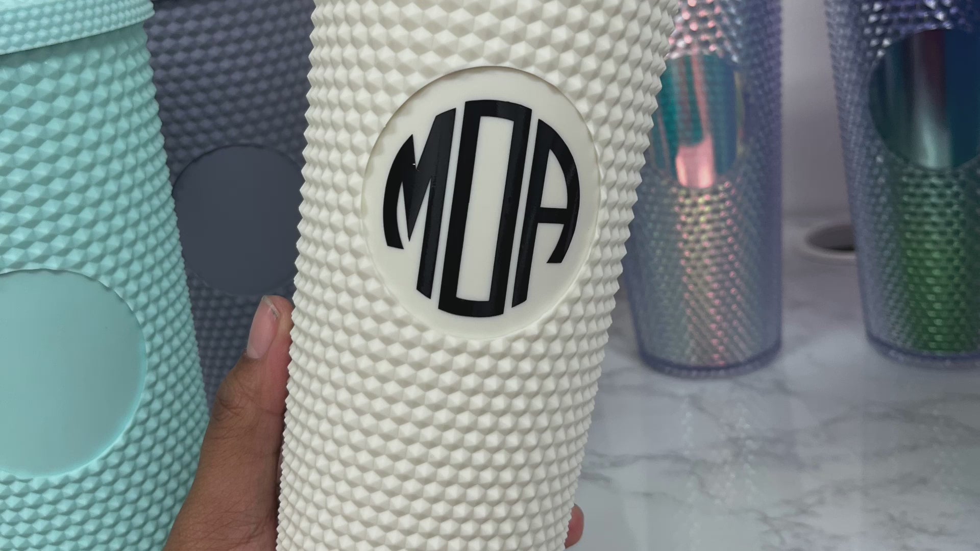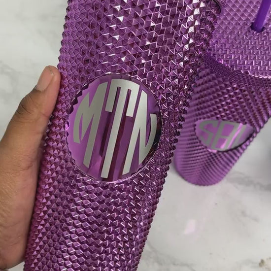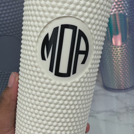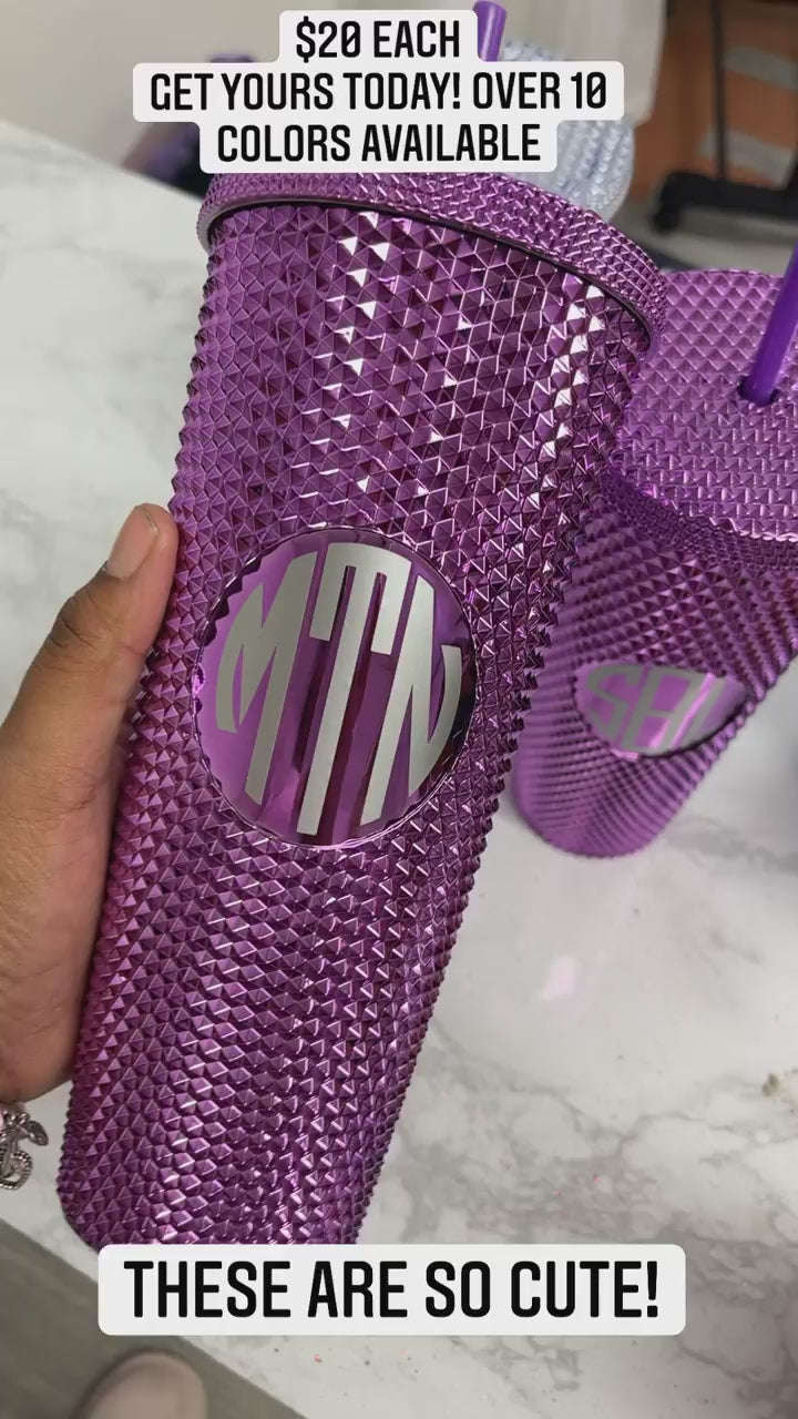 24 oz. Studded Tumblers can be monogrammed with your initials in the middle.